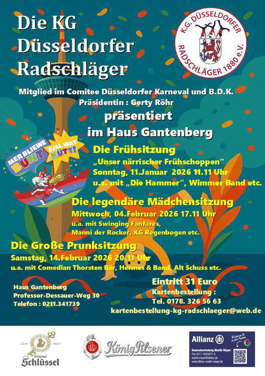 Die Sitzungen der KG Düsseldorfer Radschläger 1880 e.V. finden am